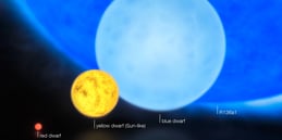 Meet UY Scuti, the largest known star by radius and volume. This red supergiant star is located about 9,500 light-years away in the constellation Scutum. UY Scuti’s diameter is estimated to be about 1,700 times larger than the Sun’s. If you could place UY Scuti in the center of our solar system, it would extend all the way out to the orbit of Jupiter! It's hard to imagine such massive scale, but UY Scuti is only one of the many gigantic stars scattered across the universe.